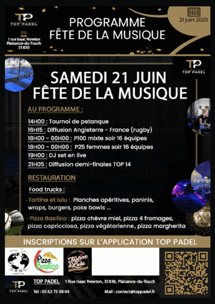 Réservez votre place directement via l’application Top Padel ou par téléphone au 05 62 75 08 04.