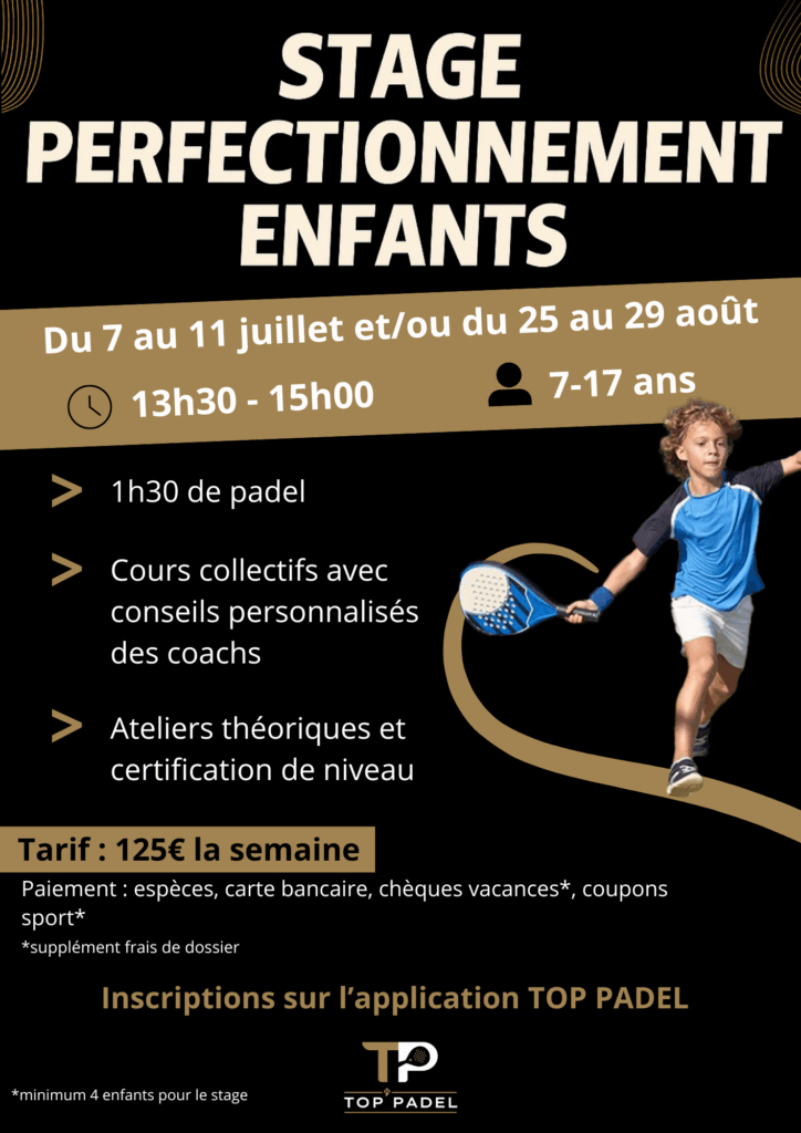 • Stage Intermédiaire : Vous connaissez déjà les bases du padel ? Venez perfectionner votre jeu avec des tactiques plus élaborées et des techniques avancées. Ce stage est idéal pour renforcer vos compétences, comprendre les subtilités du jeu en équipe et devenir plus stratégique.