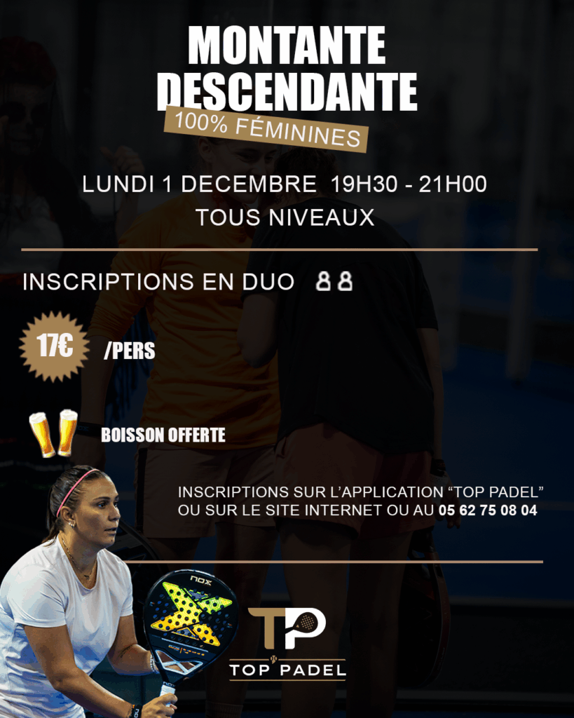 Montante Descendante 100% Féminine – Lundi 1er décembre au Top Padel