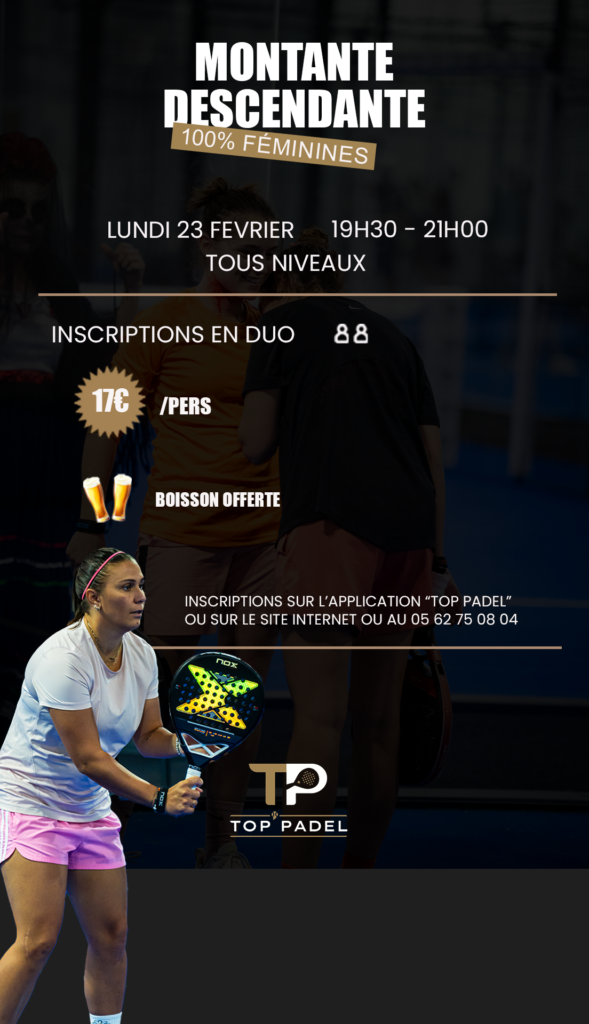 Montante Descendante 100% Féminine – Lundi 23 février au Top Padel